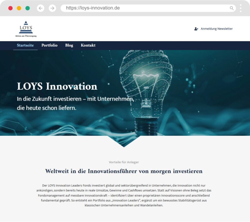Alles zum LOYS Innovation Leaders Fonds: Strategie, Portfolio und Einblicke in innovative Unternehmen.